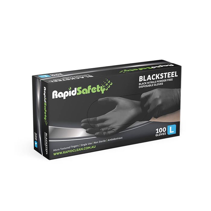 Rapid Safety Blacksteel - Nitrile Black Powder Free Disposable Gloves- Large x 100