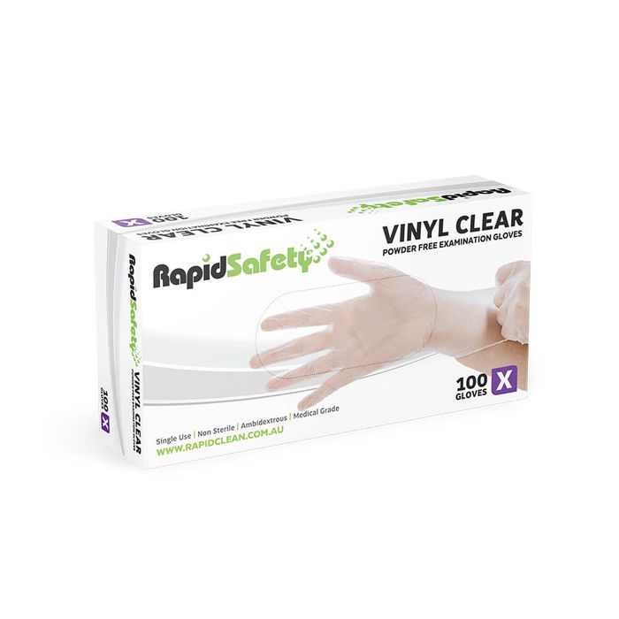 Rapid Safety - Vinyl Clear Powder Free Examination Gloves - XLarge x 100