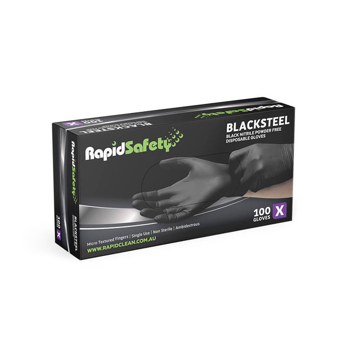 Rapid Safety Blacksteel - Nitrile Black Powder Free Disposable Gloves- XL x 100