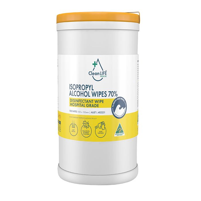CleanLife Isopropyl Alcohol Wipes 70% Canister 150 wipes 150 x 150mm